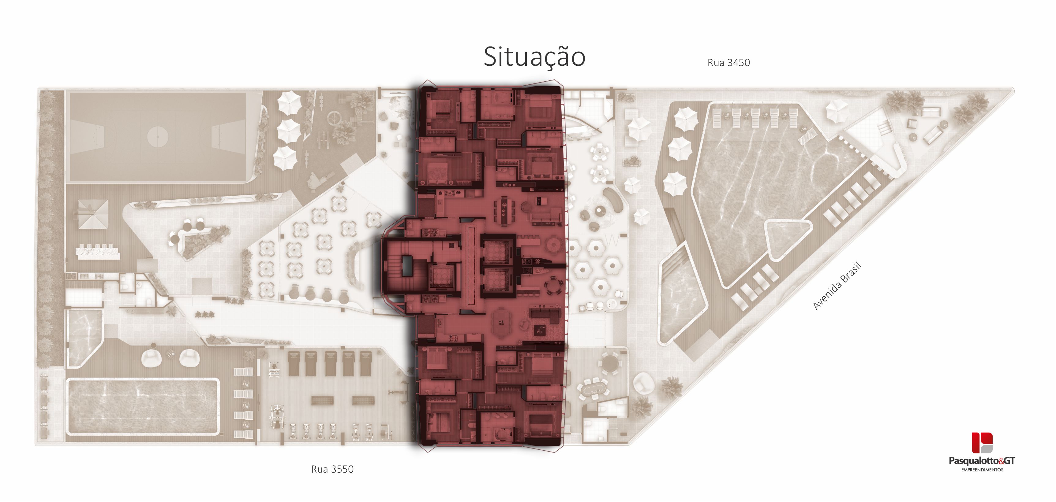 Dois apartamentos por andar de 171m² área privativa, com uma testada de frente para o mar com 15m por 14m de profundidade, possuem plantas inteligentes, sendo plantas quadradas, o que traz melhor distribuição dos cômodos, com área de circulação de menos de 5m². Pé direito é de 3,24 de laje a laje e 2,60m livre.